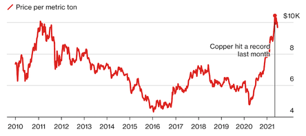 Помимо затрат на инвестиции этот переход подпитывает огромный спрос на ключевые сырьевые материалы. Например, в прошлом году медь, необходимая для прокладки электросетей и электропроводки для ветряных турбин, подорожала более чем на 60%.