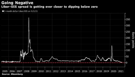 Большая часть мировых избыточных долларов в настоящее время хранится в системе обратного РЕПО ФРС, которая приняла рекордные 1,19 триллиона долларов на этой неделе от банков, фондов денежного рынка и других финансовых контрагентов. Между тем, новый механизм постоянного РЕПО, введенный в конце июля, должен добавить еще один способ для центрального банка абсорбировать избыточную ликвидность из системы, поскольку он начинает сворачивать свои покупки активов.