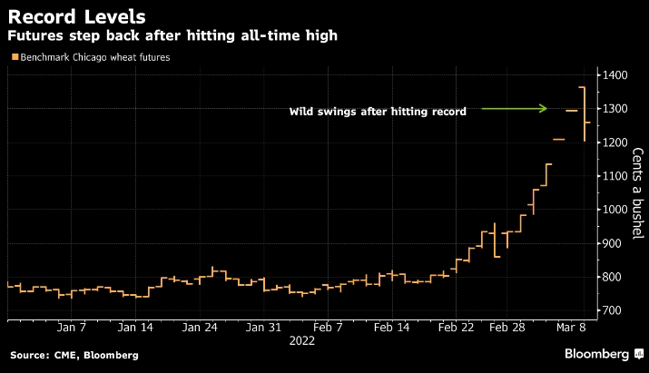 Фьючерсы на пшеницу достигли беспрецедентного максимума во вторник, подчеркнув серьезные последствия для мировых поставок продовольствия из-за войсковой спецоперации России в Украине.