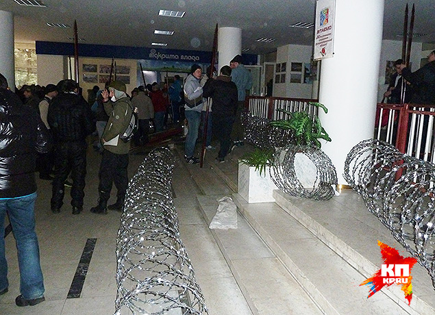В администрации путы колючей проволоки на входах и всякое там железо для отражения москальской атаки. Запасы еды и медикаментов. Приготовлен огромный зал для раненых и убитых. Остро пахнет из туалетов, так как помыть их некому. Не революционное это дело – сортиры чистить. В здании всем управляют люди, командующие на мове. А которые говорят по-русски, выполняют приказы первых.